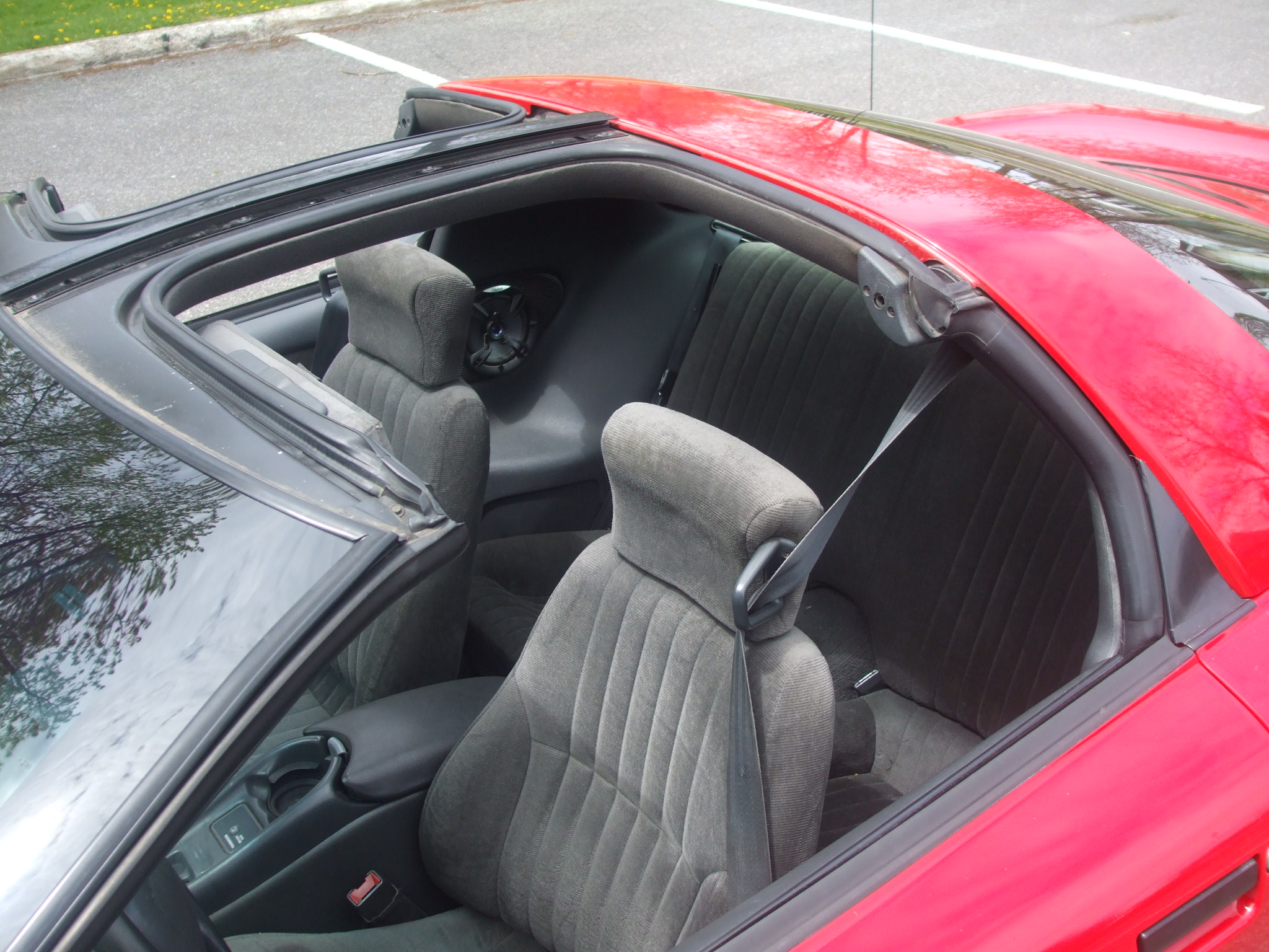 1995 Pontiac Firebird, Coupé, T-Top, Ext: Rouge, Int: Gris, 3.4L 6Cyl, Automatique, Vitres et serrures manuel, Mags 19 pouces, Radio (AM/FM/CD/XM/Bluetooth) avec entrée auxiliaire et USB, 4 passager, Stock #678.